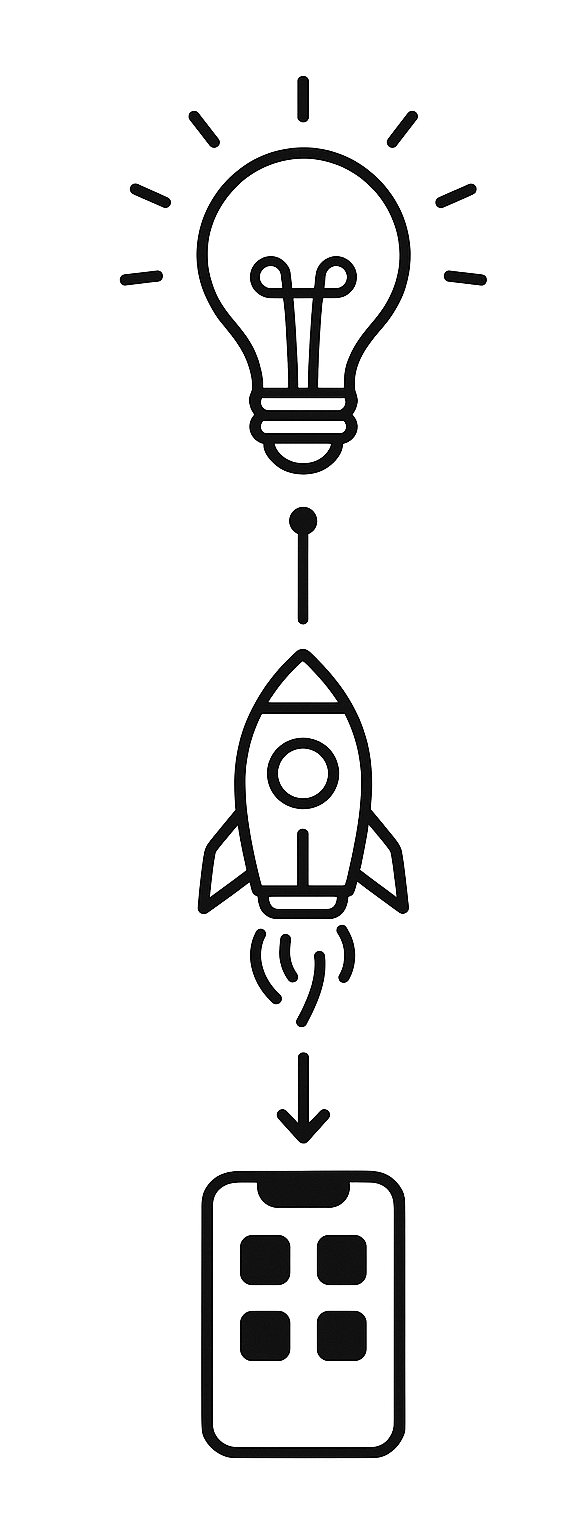 Deine App soll nach sechs Wochen live im App Store und bei Google Play stehen, erste Nutzer gewinnen und erste Einnahmen ermöglichen.